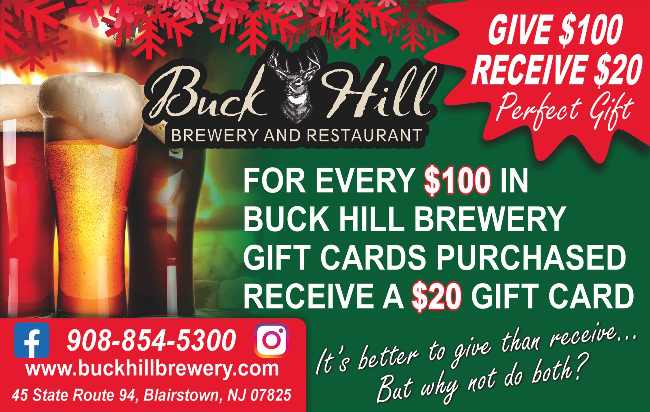 For Every $100 in Gift Cards, Receive $20 Offer Good November 24th-December 31st Gift Cards May Not be Used on Date of Purchase **They Never Expire!*** |